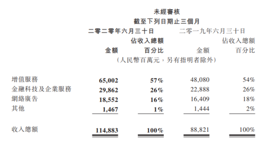 腾讯2020Q2按业务划分的收入结构