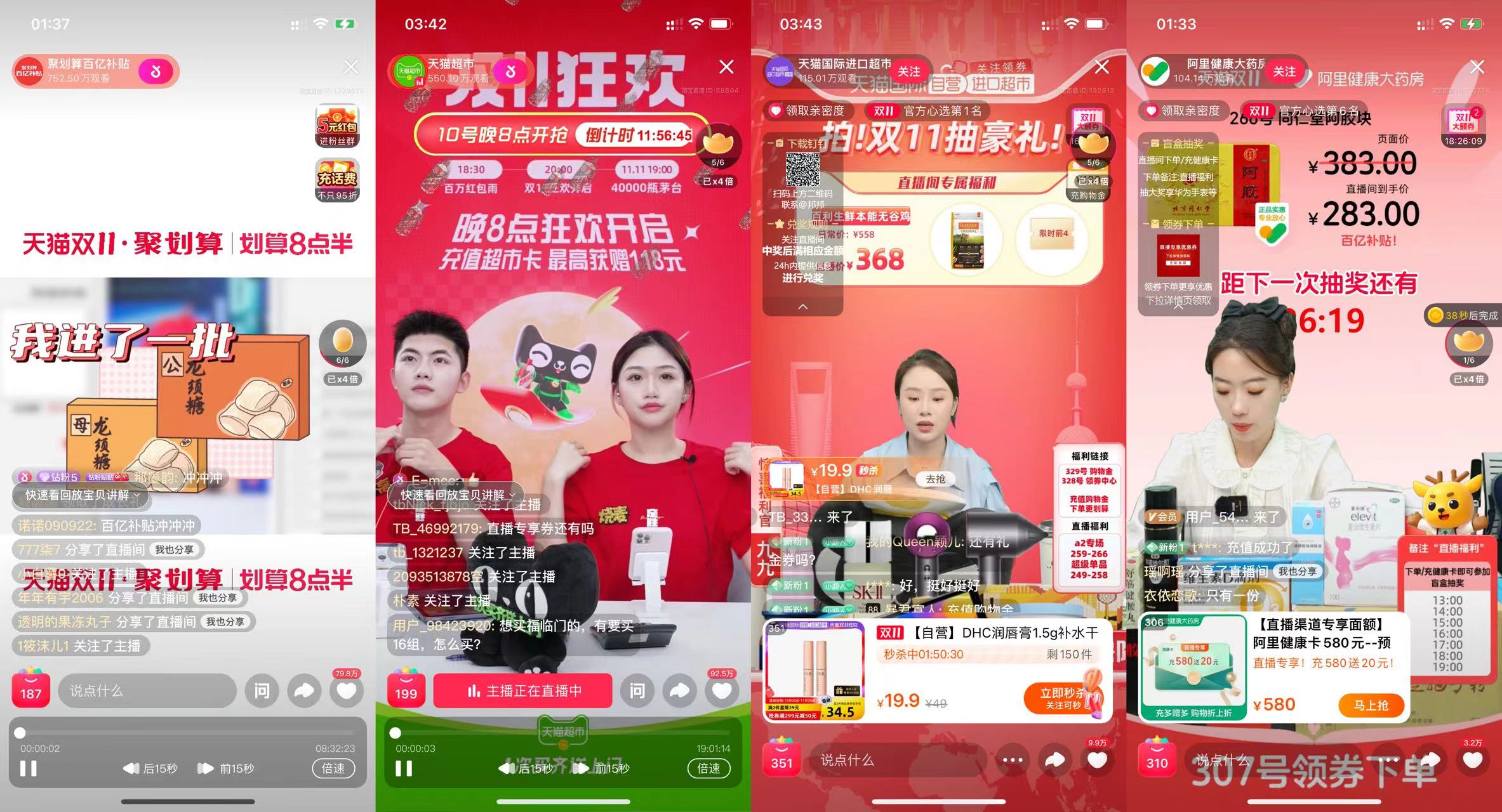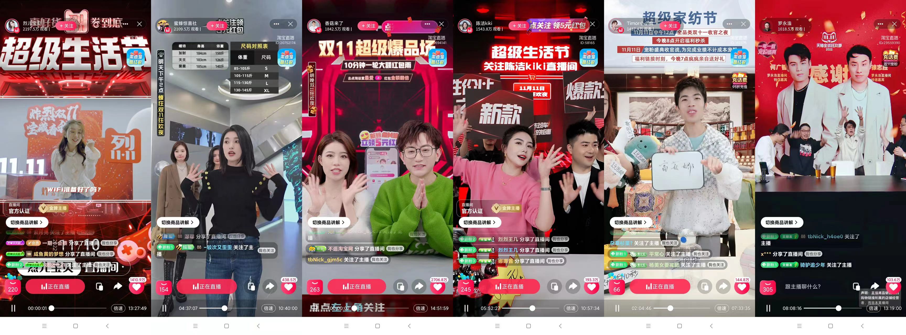 而阿里官方直播间场观也有不俗表现。聚划算百亿补贴、天猫超市、天猫国际进口超市、阿里健康大药房等4个官方直播间场观破百万。特别是聚划算百亿补贴场观已经达到752.5万,且日常直播场观也在数百万量级,天猫超市则突破550万场观。