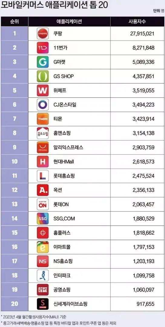 其一是本土三巨头的强势垄断。数据显示,在用户规模方面,Coupang以2791万用户领跑,超过第二名11thStreet的30%,而Gmarket则以508万用户排名第三。但新世界集团旗下的各大业务用户总数高达1200万,由此形成的三寡头垄断格局不断强化。