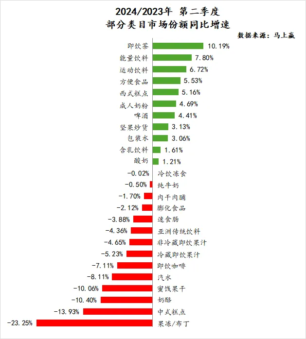 运动饮料:24Q2新品动能很强,上新当季就取得了很好的市场份额表现。但反观23Q2、24Q1的新品的存活能力并不突出,份额远不及24Q2当季新品;