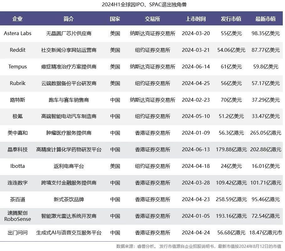 13家独角兽因IPO、SPAC上市退出,7家独角兽因并购退出