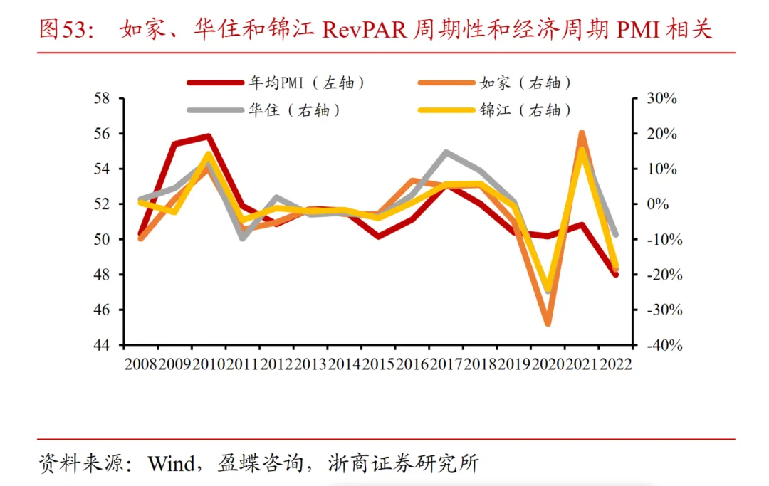 国内三大酒店集团的RevPAR波动往往也与PMI紧密相关,目前较低PMI也就表明酒店行业的需求依然疲软,四季度预计仍将面临不小的困难。