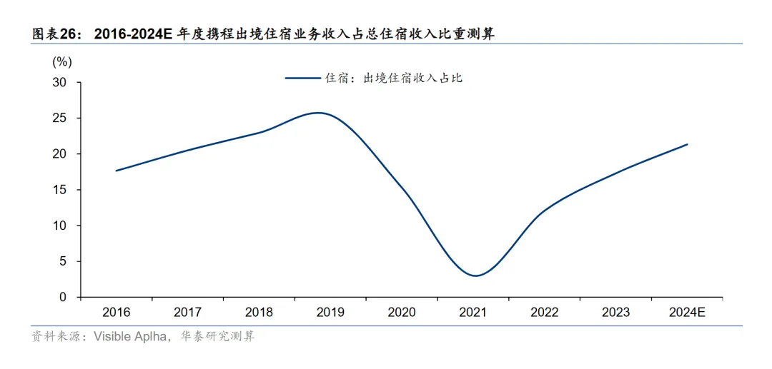 有机构预测,2024年携程的大住宿收入中,海外住宿贡献的比例将达到21%。