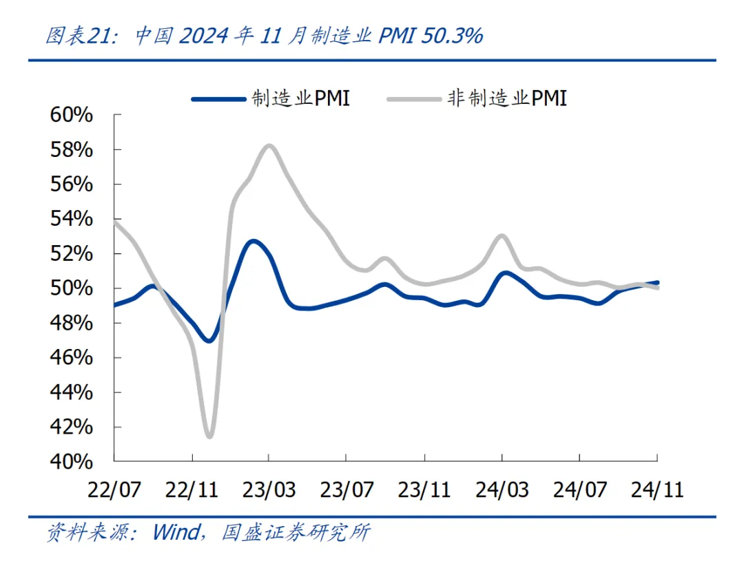 最新出炉的11月制造业PMI指数为50.3%,虽然略高于荣枯线,但整体还处于低谷。