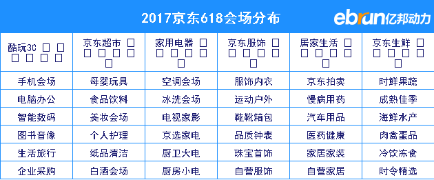 | 2017京东618会场分布 | |||||