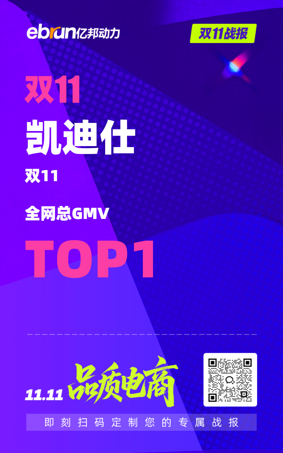 11月12日双11战报消息,凯迪仕双11全网总GMVTOP1。数据统计周期10.9-11.11,数据取自电商平台后台数据。